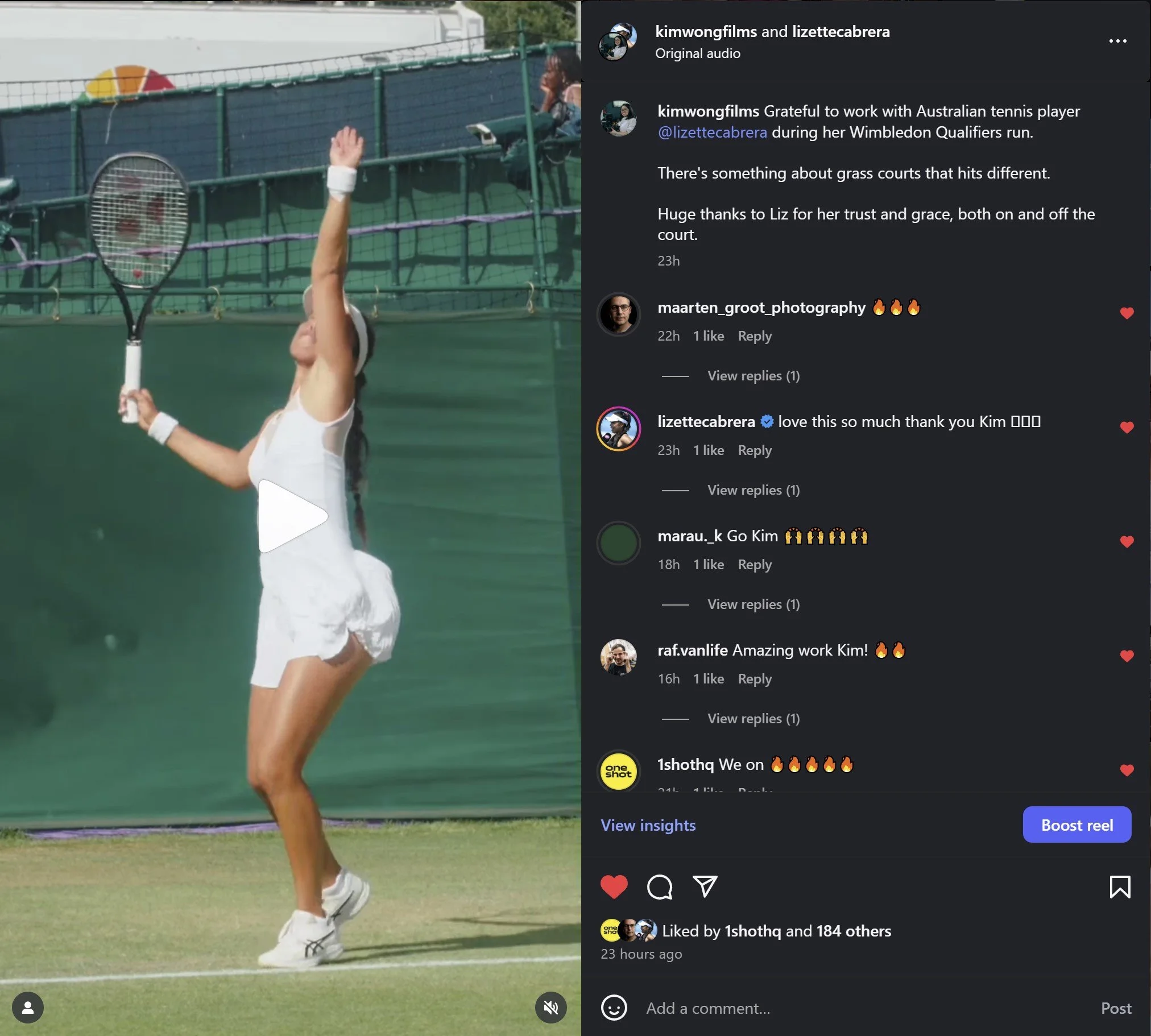 “Kim was such a pleasure to work with. She was so understanding and professional and I loved all the content she helped me produce. I really trusted Kim with my vision and I was so happy with my on court content!